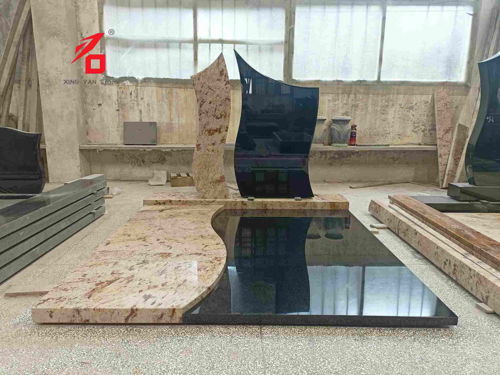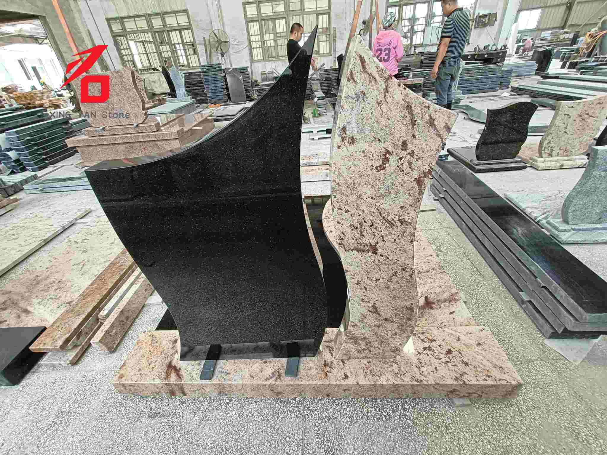 Materiał i wykonanie: Wykonane ze starannie wyselekcjonowanego, zatwierdzonego w Australii czarnego granitu i lokalnego granitu, precyzyjnie przycięte przy użyciu obróbki CNC i polerowania lustrzanego, co daje naturalną teksturę i trwały połysk. Nieregularny kształt i proporcje są ściśle dostosowane do australijskich standardów montażu na cmentarzach, zapewniając wygodny i stabilny montaż.