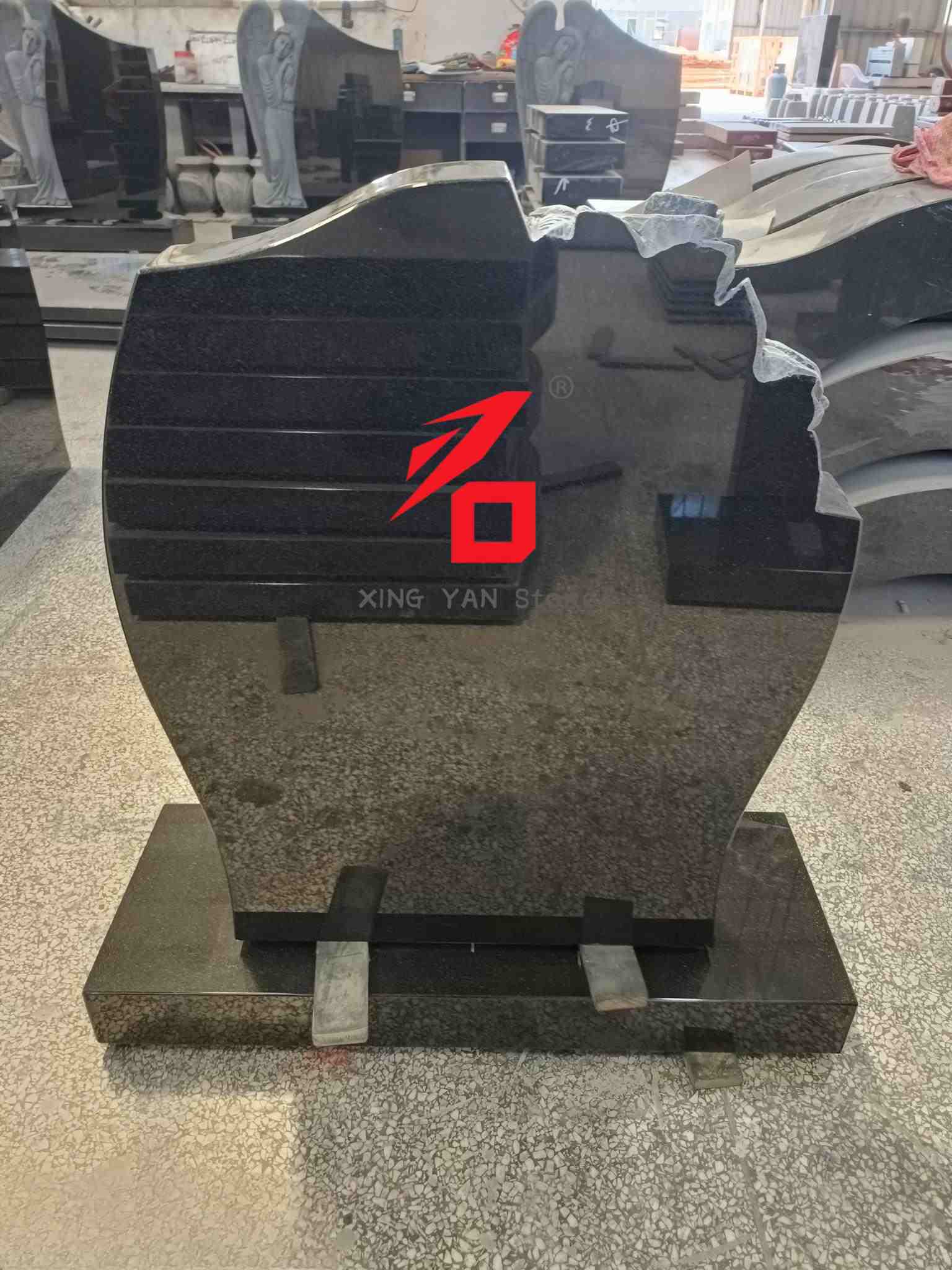 Materiał: Czarny granit o wysokiej twardości (delikatna faktura, wysoki połysk), drobno polerowany, odporny na warunki atmosferyczne i korozję, odpowiedni do długotrwałej ekspozycji na zewnątrz;