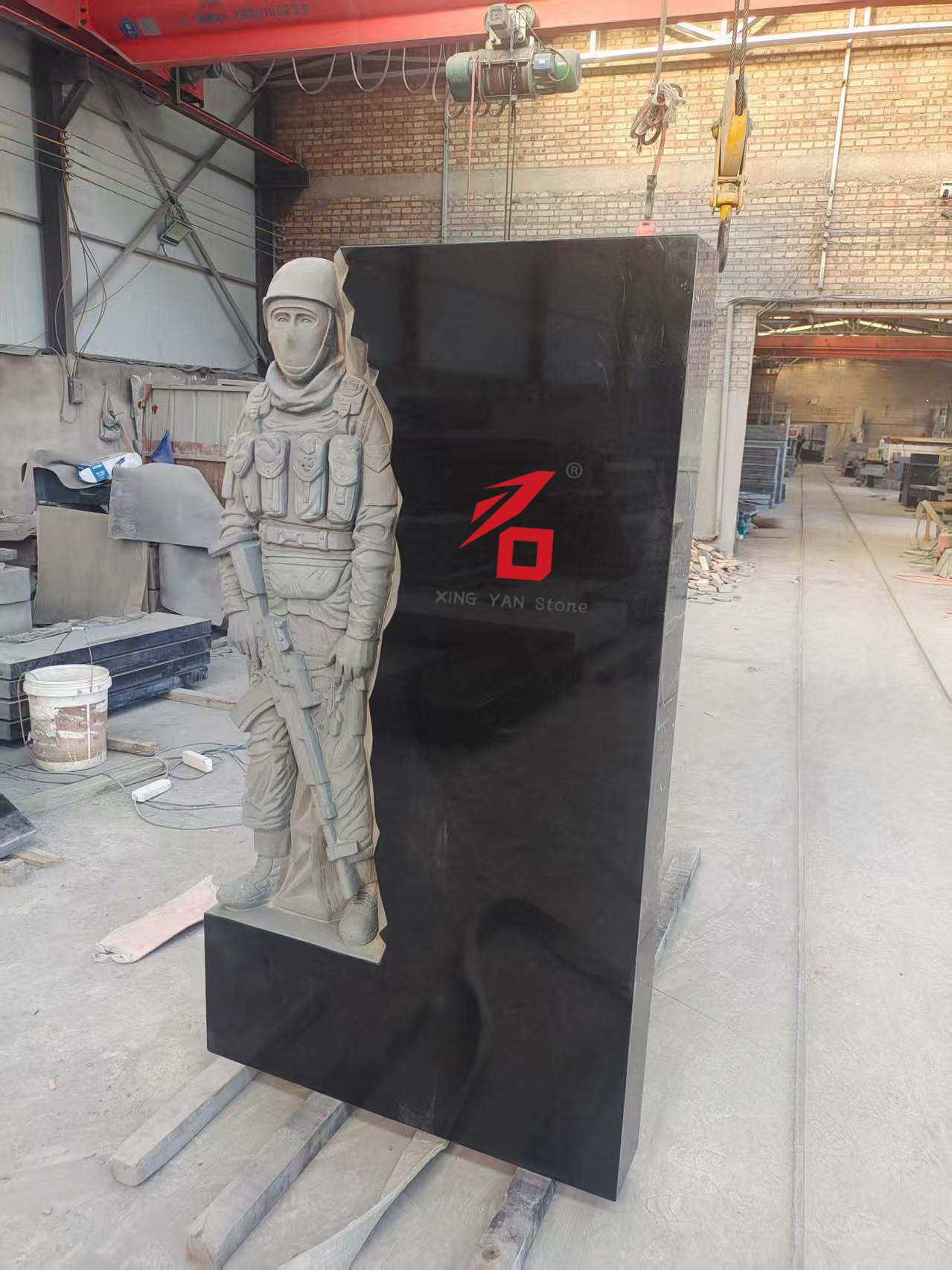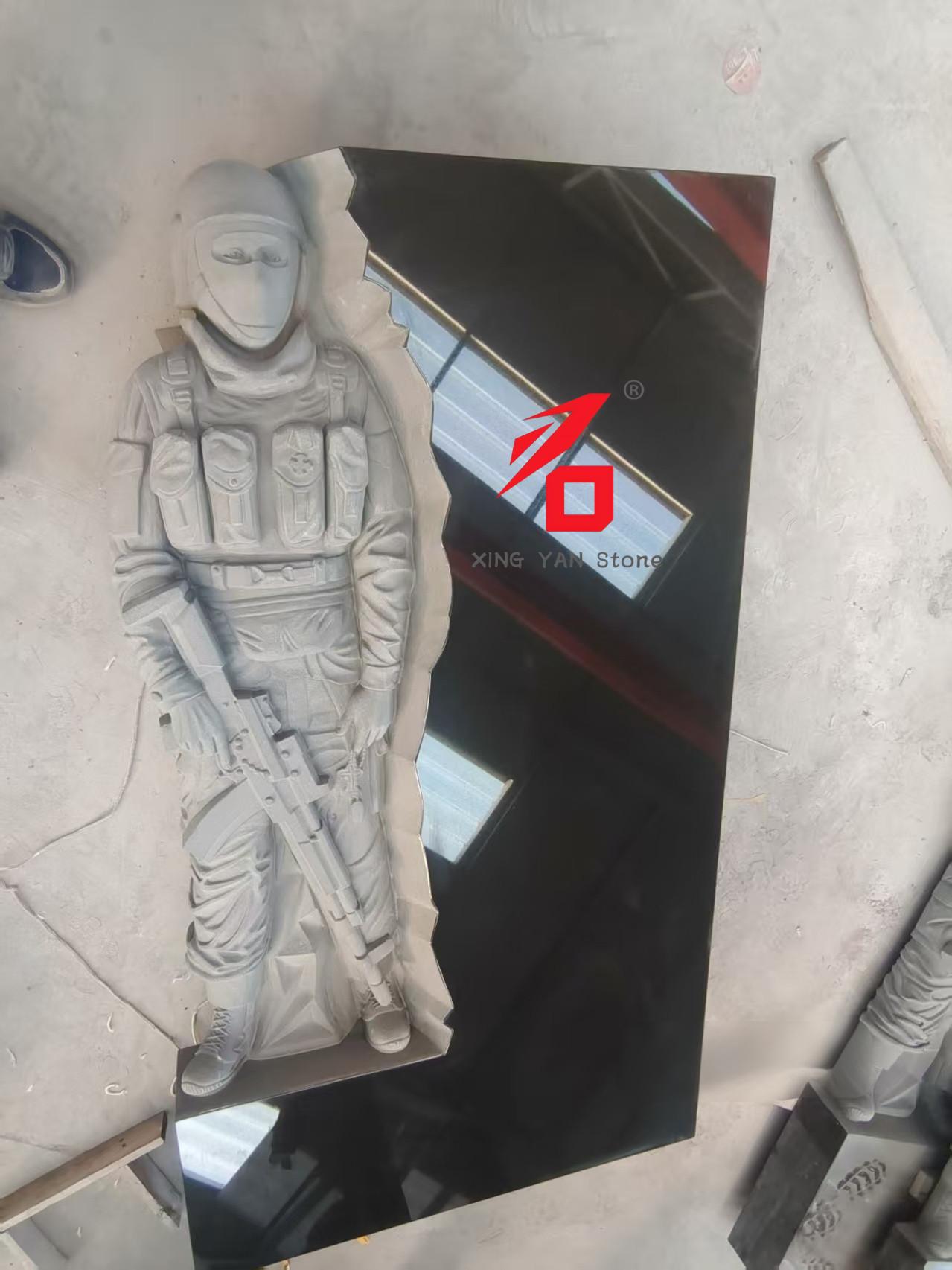 Materiał: czarny granit o wysokiej twardości (np. czarny granit indyjski), drobno polerowany w celu uzyskania gładkiej, błyszczącej powierzchni, odporny na warunki atmosferyczne i korozję, odpowiedni do długotrwałej ekspozycji na zewnątrz;