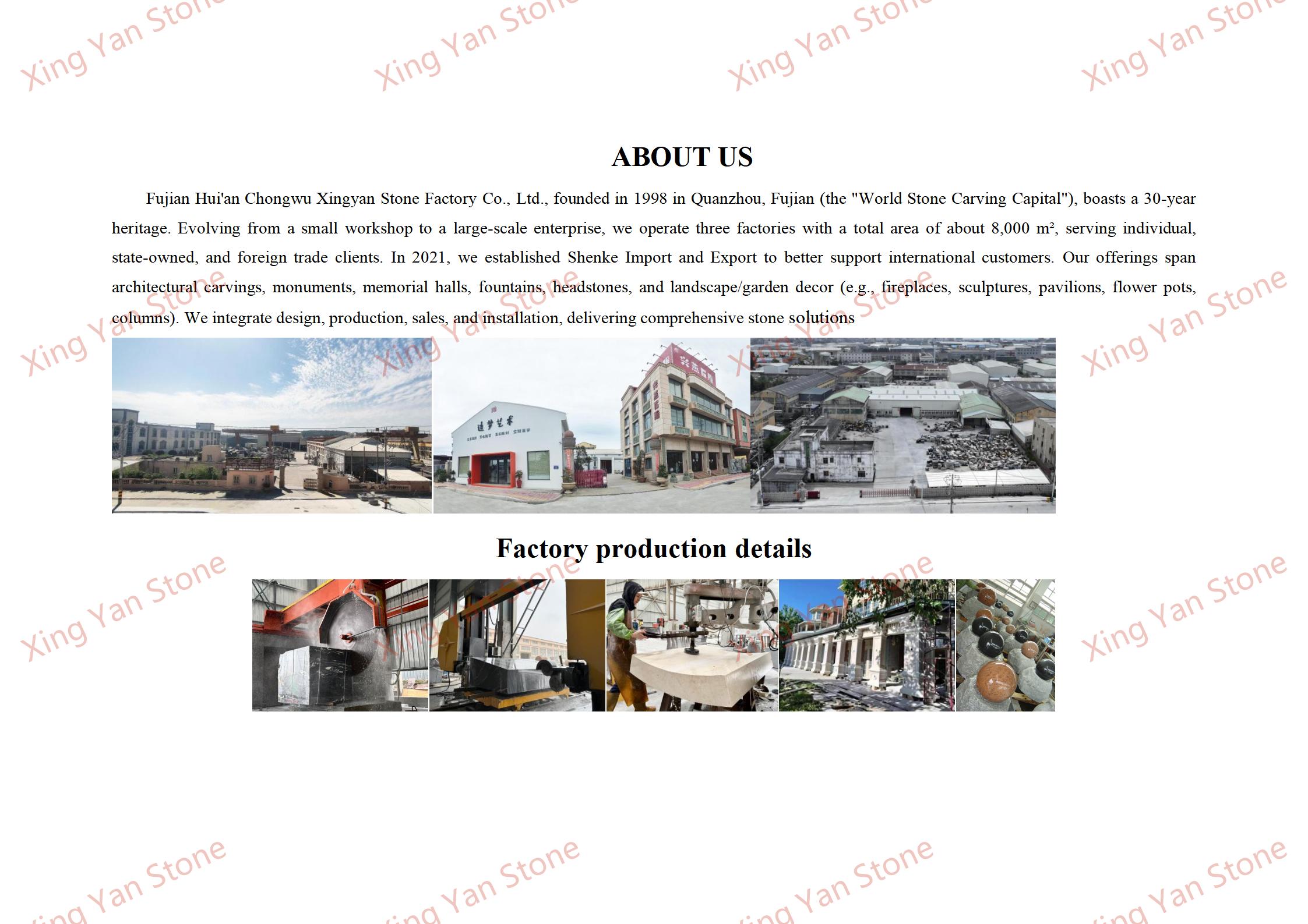 Usługi dostosowywania: Rozmiar i materiał posągu można dostosować do wymagań (np. zmiana na inne odmiany granitu) i obsługiwane jest grawerowanie tekstu (np. imię i nazwisko, wiadomość pamiątkowa);