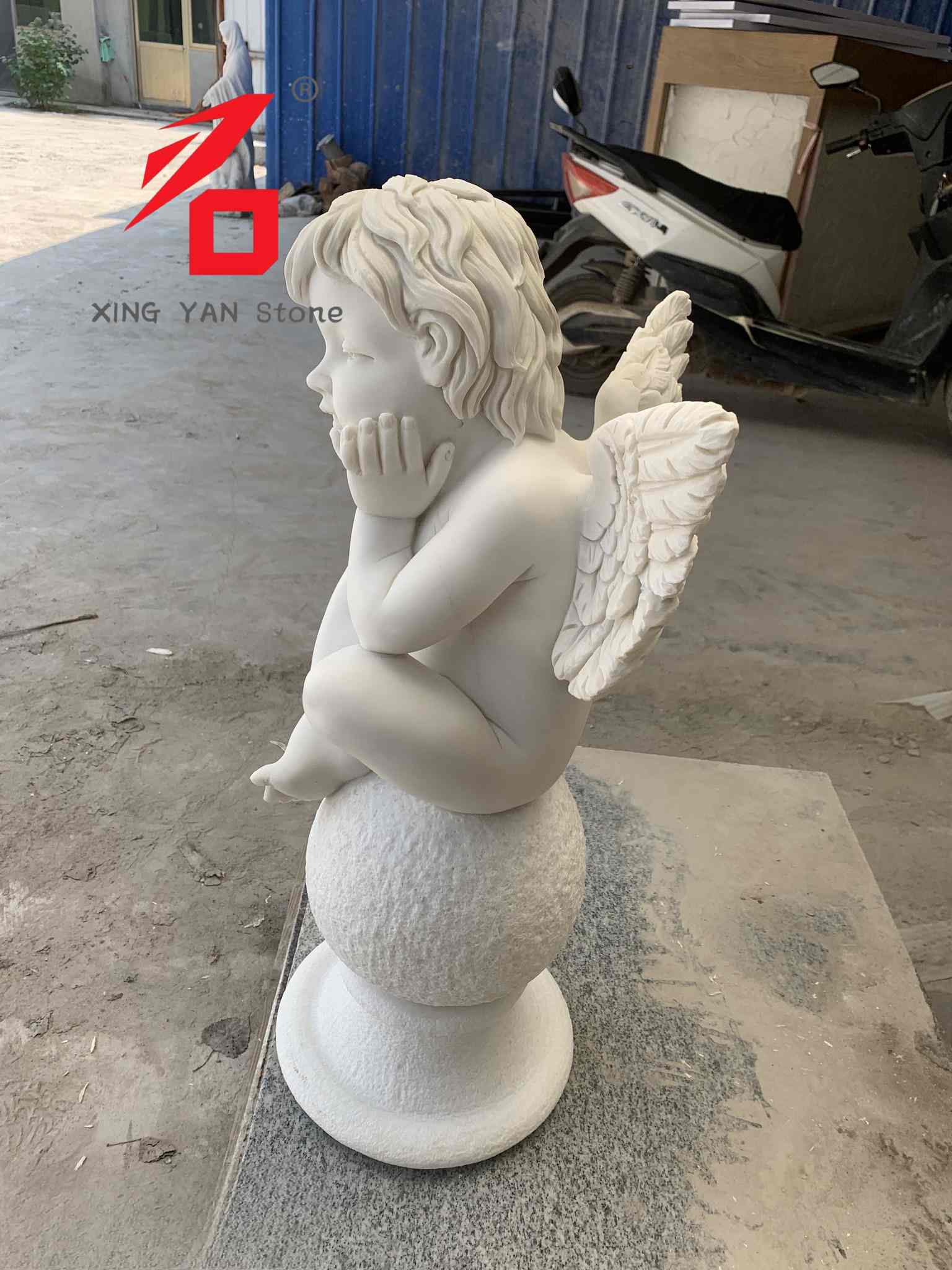 Styl projektu: Przyjmując europejski styl klasyczny, cherubin jest przedstawiony w kontemplacyjnej pozie, z rękami podpierającymi brodę, z pogodnym wyrazem twarzy. Jego skrzydła są wyraźnie zdefiniowane, a faktura piór wyraźna, tworząc ogólnie romantyczny nastrój, który pasuje do dekoracyjnych potrzeb europejskich ogrodów, miejsc kultu religijnego lub miejsc pamiątkowych.
